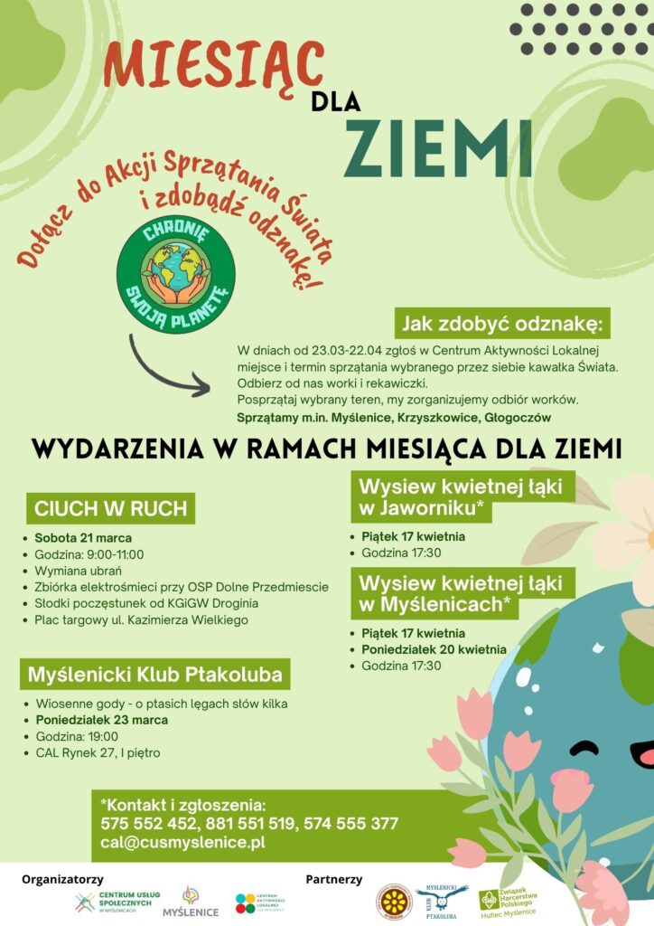 Wraz z nadejściem pierwszego dnia wiosny rozpoczynamy inicjatywę „Miesiąc dla Ziemi”, której celem jest wspólna troska o środowisko naturalne oraz poprawa estetyki naszej najbliższej okolicy.